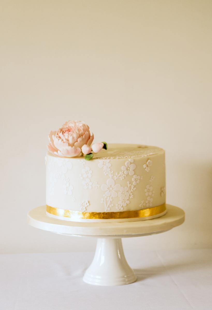 Edible gold leaf, sugar stencil, sugar flower and piped greeting