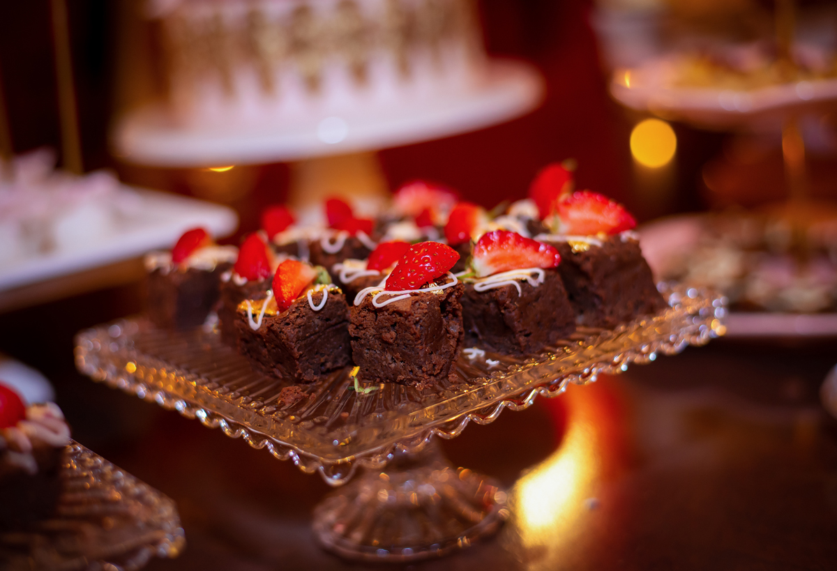Often topped with gold leaf, drizzled with white chocolate and topped with a strawberry, black cherry or raspberry.
